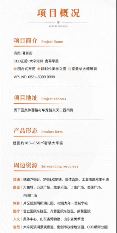 1、本項目推廣名為尊御府;開發公司為山東航泰匯智產業發展有限公司。2、本資料僅為要約邀請,相關宣傳內容不排除因政府規劃、規定及出賣人分期規劃、未能控制等原因而發生變化。3、買賣雙方的權利義務具體以雙方簽訂的購房合同及其附件資料為準,開發商保留調整/修改本資料的權利。4、本宣傳資料所涉及的戶型等宣傳內容僅供參考,不同樓棟、不同單元、不同戶型的面積尺寸、功能布局、空間分割、門窗/管井形態位置等均有不同;相同戶型因樓棟、樓層、單元等差別,局部結構、面積等也有可能不同,本戶型圖所標注尺寸(尺寸為約數,單位為毫米)僅供參考,圖中尺寸為軸線尺寸,因墻體與軸線定位關系不同及施工誤差,與實際交付房屋尺寸可能存在差異,以實際交付為準。5、本文中所有景觀圖僅供參考,不對房屋價格產生實質影響,非實景圖,本項目具體景觀以實景交付為準。6、項目周邊環境、交通、區位及其公共設施等介紹,旨在提供相關信息,不代表本公司對此作出要約或承諾,最終以政府規劃為準。本資料中教育配套具有不確定性因素,具體以當地教育部門和學校招生政策為準。7、本資料發布時間為2024年11月,敬請留意最新資料。預售證號:1#濟建預許202409140577號、3#濟建預許202409140578號、6#濟建預許202406070391號、8#濟建預許202406070392號、9#濟建預許202409140579號。
