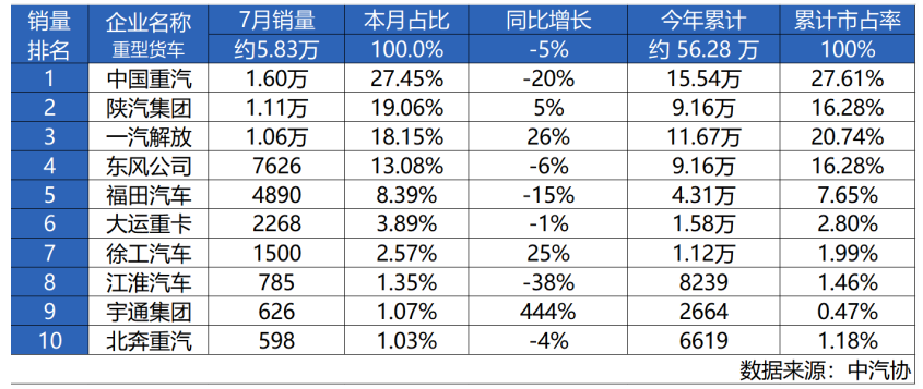 根據(jù)中汽協(xié)最新數(shù)據(jù),2024年7月我國重卡市場銷售約5.9萬輛(批發(fā)口徑,包含出口和新能源),環(huán)比下降17%,同比下降4%,減少約2000輛。在傳統(tǒng)銷售淡季與多重市場挑戰(zhàn)交織的背景下,中國重汽以扛鼎之姿衛(wèi)冕7月重卡市場銷量冠軍,彰顯了其一貫的行業(yè)領(lǐng)先實(shí)力,用銷量數(shù)據(jù)書寫了“淡季不淡”的卓然篇章。 統(tǒng)計(jì)顯示,中國重汽7月重卡銷量1.6萬輛,穩(wěn)居行業(yè)榜首,同時(shí),其1-7月累計(jì)銷售約15.54萬輛,同比增長4%,市場占有率攀升至27.6%,這一逆市上揚(yáng)的強(qiáng)勁增長態(tài)勢,無疑是對中國重汽行業(yè)技術(shù)領(lǐng)先地位和產(chǎn)品卓越實(shí)力的最佳注解。